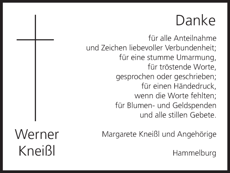 Hier finden Sie alle Traueranzeigen aus der Zeitung, die bisher für Werner Kneißl erschienen sind. Weitere Traueranzeigen, die in der Zeitung erscheinen, werden hier ebenfalls aufgelistet