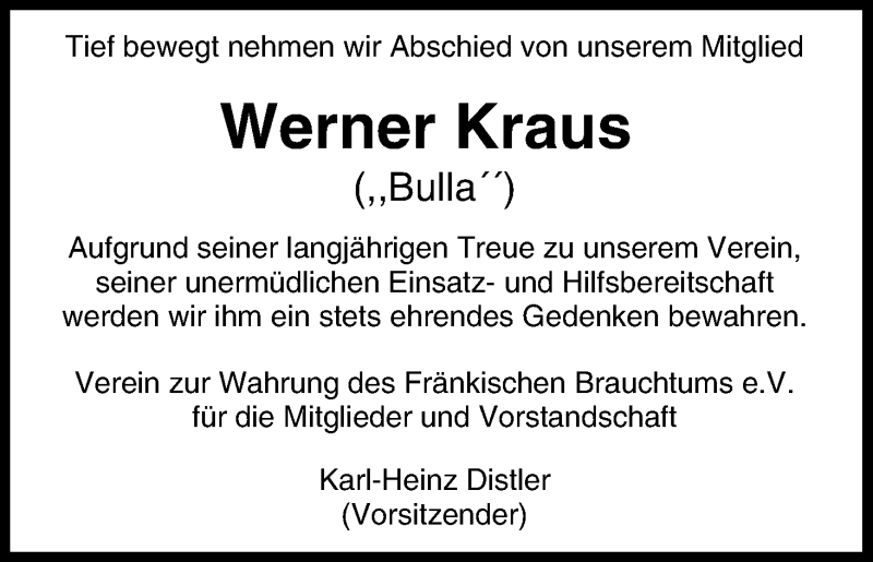 Hier finden Sie alle Traueranzeigen aus der Zeitung, die bisher für Werner Kraus erschienen sind. Weitere Traueranzeigen, die in der Zeitung erscheinen, werden hier ebenfalls aufgelistet