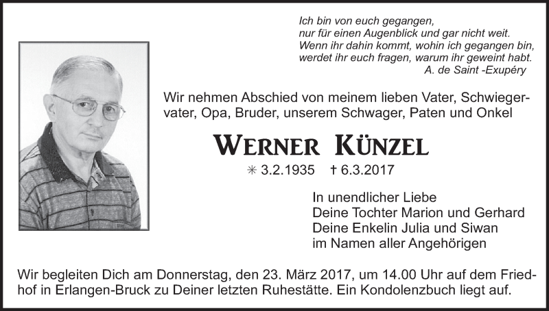 Hier finden Sie alle Traueranzeigen aus der Zeitung, die bisher für Werner Künzel erschienen sind. Weitere Traueranzeigen, die in der Zeitung erscheinen, werden hier ebenfalls aufgelistet