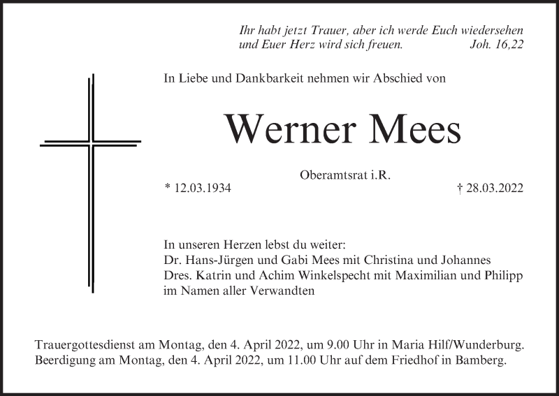Hier finden Sie alle Traueranzeigen aus der Zeitung, die bisher für Werner Mees erschienen sind. Weitere Traueranzeigen, die in der Zeitung erscheinen, werden hier ebenfalls aufgelistet