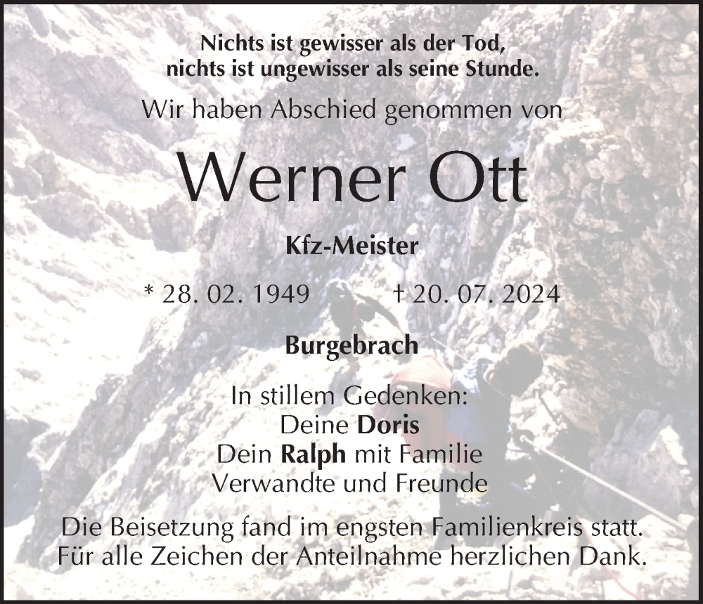 Hier finden Sie alle Traueranzeigen aus der Zeitung, die bisher für Werner Ott erschienen sind. Weitere Traueranzeigen, die in der Zeitung erscheinen, werden hier ebenfalls aufgelistet