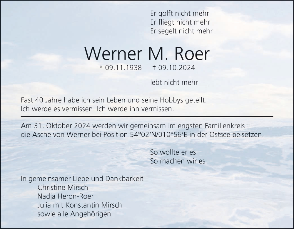 Hier finden Sie alle Traueranzeigen aus der Zeitung, die bisher für Werner Roer erschienen sind. Weitere Traueranzeigen, die in der Zeitung erscheinen, werden hier ebenfalls aufgelistet