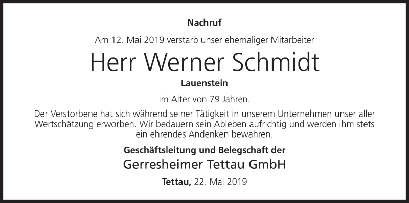 Hier finden Sie alle Traueranzeigen aus der Zeitung, die bisher für Werner Schmidt erschienen sind. Weitere Traueranzeigen, die in der Zeitung erscheinen, werden hier ebenfalls aufgelistet