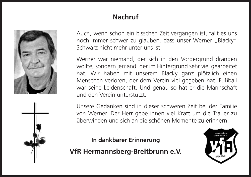 Hier finden Sie alle Traueranzeigen aus der Zeitung, die bisher für Werner Schwarz erschienen sind. Weitere Traueranzeigen, die in der Zeitung erscheinen, werden hier ebenfalls aufgelistet