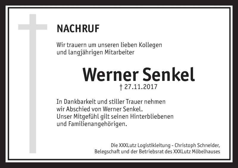 Hier finden Sie alle Traueranzeigen aus der Zeitung, die bisher für Werner Senkel erschienen sind. Weitere Traueranzeigen, die in der Zeitung erscheinen, werden hier ebenfalls aufgelistet