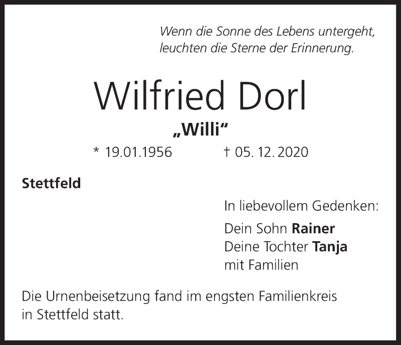 Hier finden Sie alle Traueranzeigen aus der Zeitung, die bisher für Wilfried Dorl erschienen sind. Weitere Traueranzeigen, die in der Zeitung erscheinen, werden hier ebenfalls aufgelistet