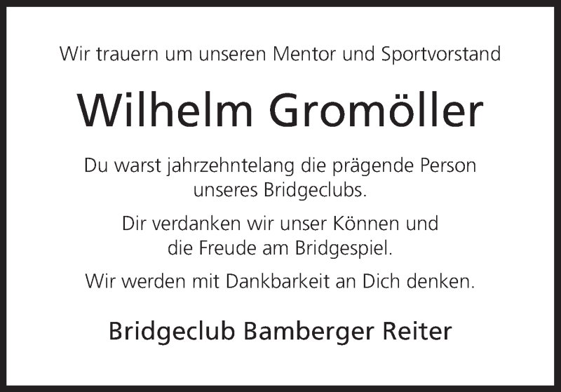 Hier finden Sie alle Traueranzeigen aus der Zeitung, die bisher für Wilhelm Gromöller erschienen sind. Weitere Traueranzeigen, die in der Zeitung erscheinen, werden hier ebenfalls aufgelistet