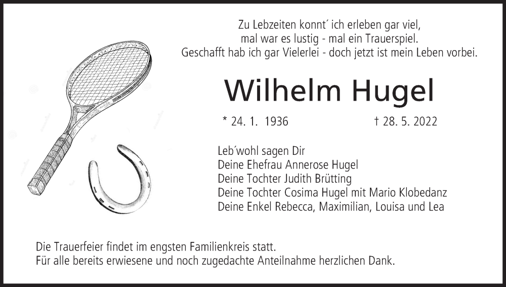 Hier finden Sie alle Traueranzeigen aus der Zeitung, die bisher für Wilhelm Hugel erschienen sind. Weitere Traueranzeigen, die in der Zeitung erscheinen, werden hier ebenfalls aufgelistet