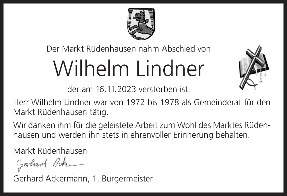 Hier finden Sie alle Traueranzeigen aus der Zeitung, die bisher für Wilhelm Lindner erschienen sind. Weitere Traueranzeigen, die in der Zeitung erscheinen, werden hier ebenfalls aufgelistet