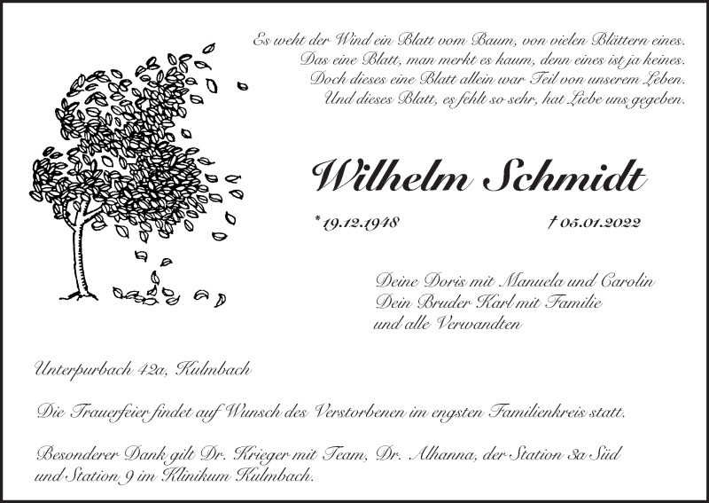 Hier finden Sie alle Traueranzeigen aus der Zeitung, die bisher für Wilhelm Schmidt erschienen sind. Weitere Traueranzeigen, die in der Zeitung erscheinen, werden hier ebenfalls aufgelistet