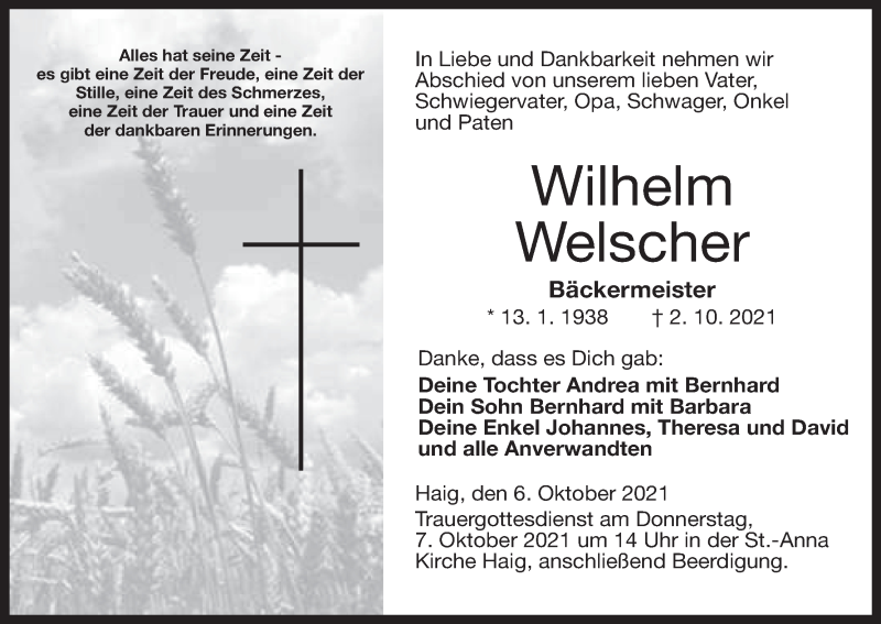 Hier finden Sie alle Traueranzeigen aus der Zeitung, die bisher für Wilhelm Welscher erschienen sind. Weitere Traueranzeigen, die in der Zeitung erscheinen, werden hier ebenfalls aufgelistet