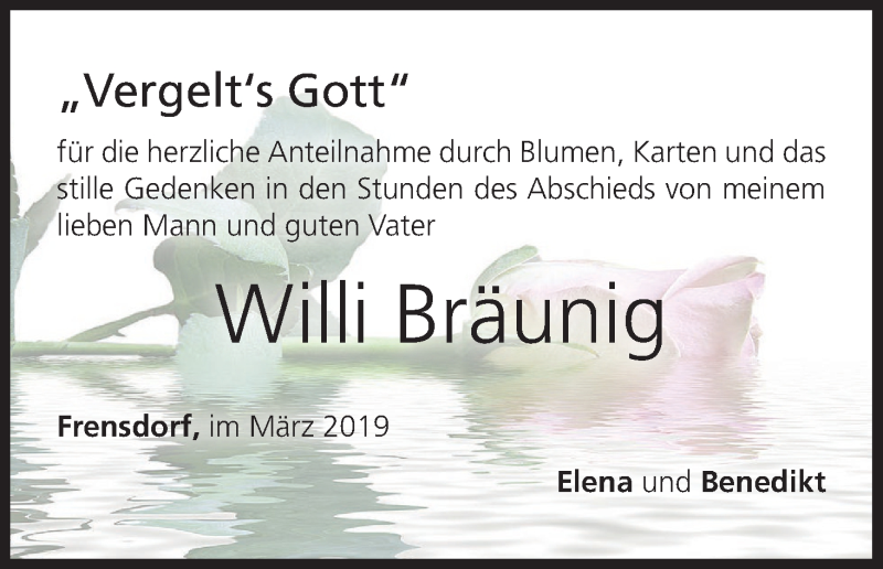 Hier finden Sie alle Traueranzeigen aus der Zeitung, die bisher für Willi Bräunig erschienen sind. Weitere Traueranzeigen, die in der Zeitung erscheinen, werden hier ebenfalls aufgelistet