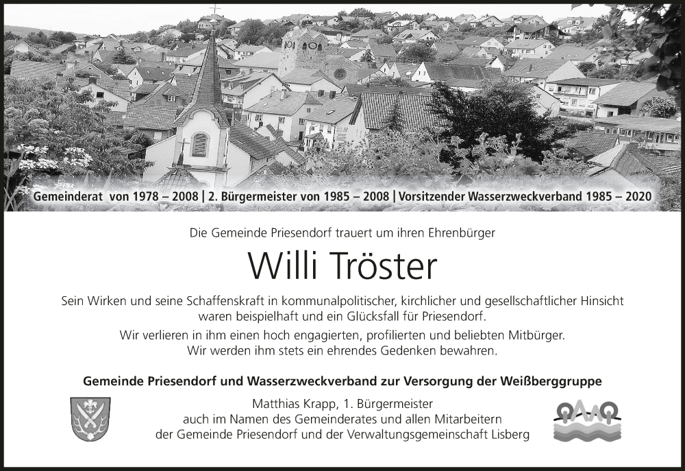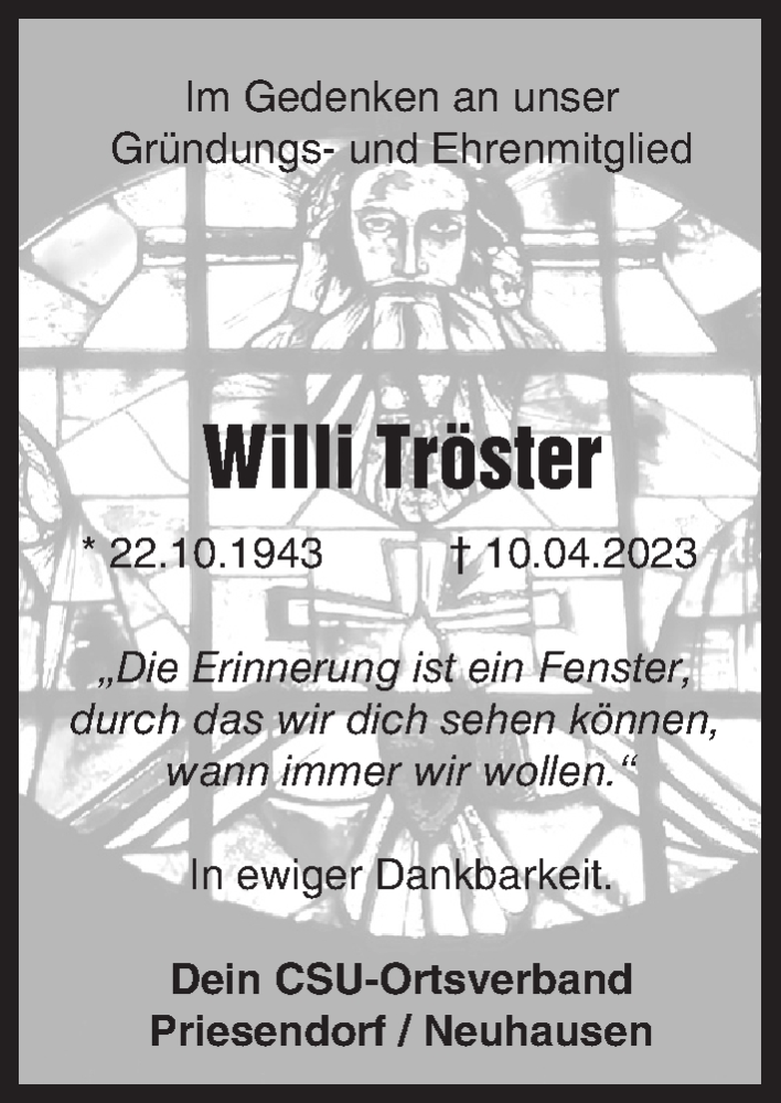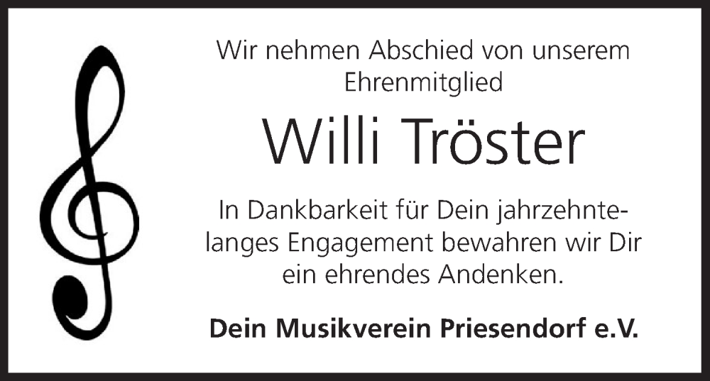 Hier finden Sie alle Traueranzeigen aus der Zeitung, die bisher für Willi Tröster erschienen sind. Weitere Traueranzeigen, die in der Zeitung erscheinen, werden hier ebenfalls aufgelistet