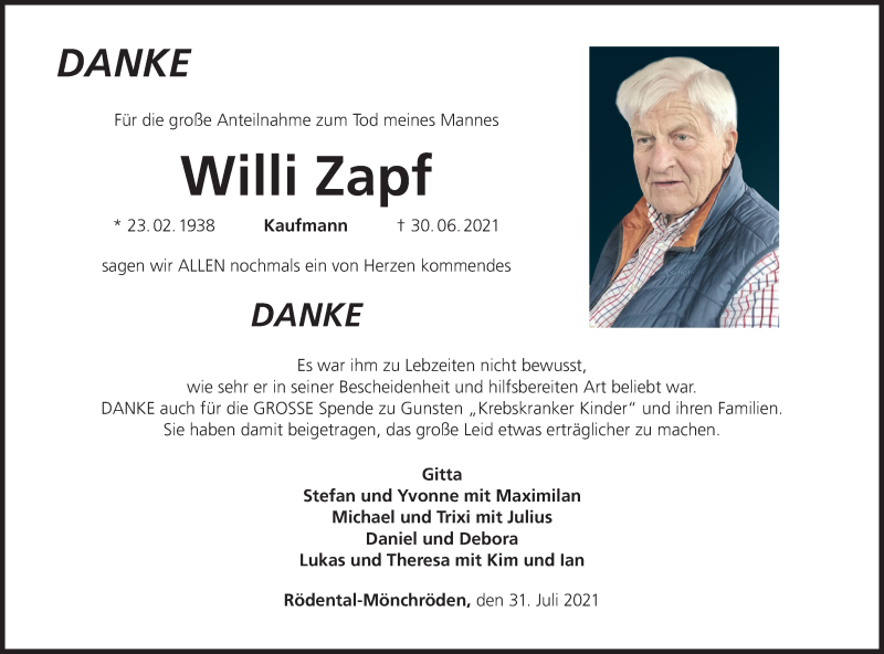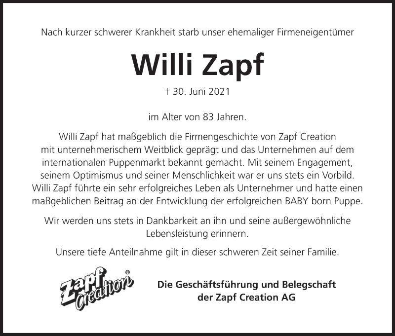 Hier finden Sie alle Traueranzeigen aus der Zeitung, die bisher für Willi Zapf erschienen sind. Weitere Traueranzeigen, die in der Zeitung erscheinen, werden hier ebenfalls aufgelistet
