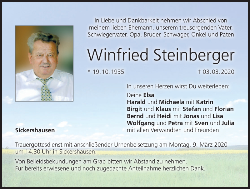 Hier finden Sie alle Traueranzeigen aus der Zeitung, die bisher für Winfried Steinberger erschienen sind. Weitere Traueranzeigen, die in der Zeitung erscheinen, werden hier ebenfalls aufgelistet