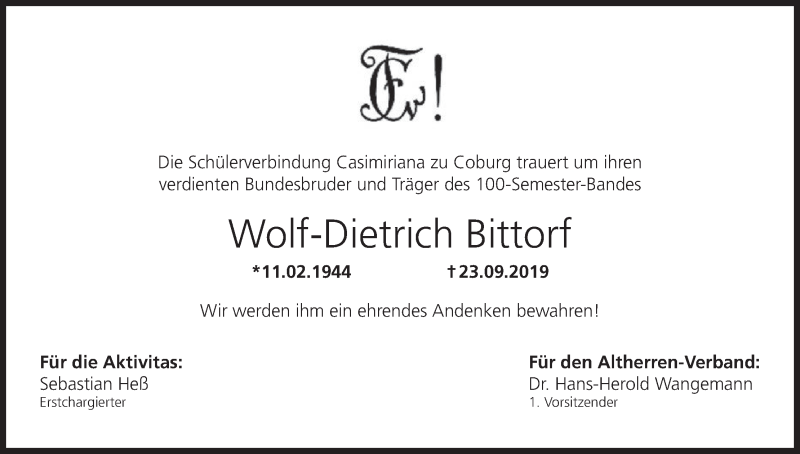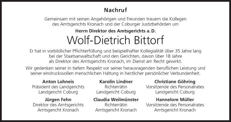 Hier finden Sie alle Traueranzeigen aus der Zeitung, die bisher für Wolf-Dietrich Bittorf erschienen sind. Weitere Traueranzeigen, die in der Zeitung erscheinen, werden hier ebenfalls aufgelistet