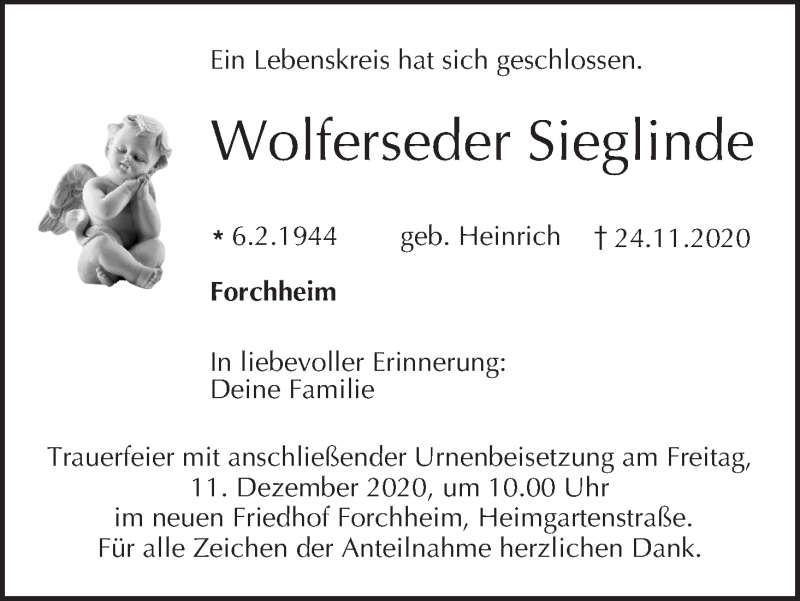 Hier finden Sie alle Traueranzeigen aus der Zeitung, die bisher für Wolferseder Sieglinde erschienen sind. Weitere Traueranzeigen, die in der Zeitung erscheinen, werden hier ebenfalls aufgelistet