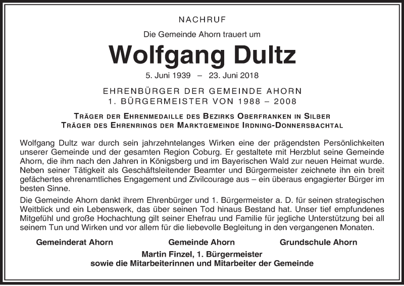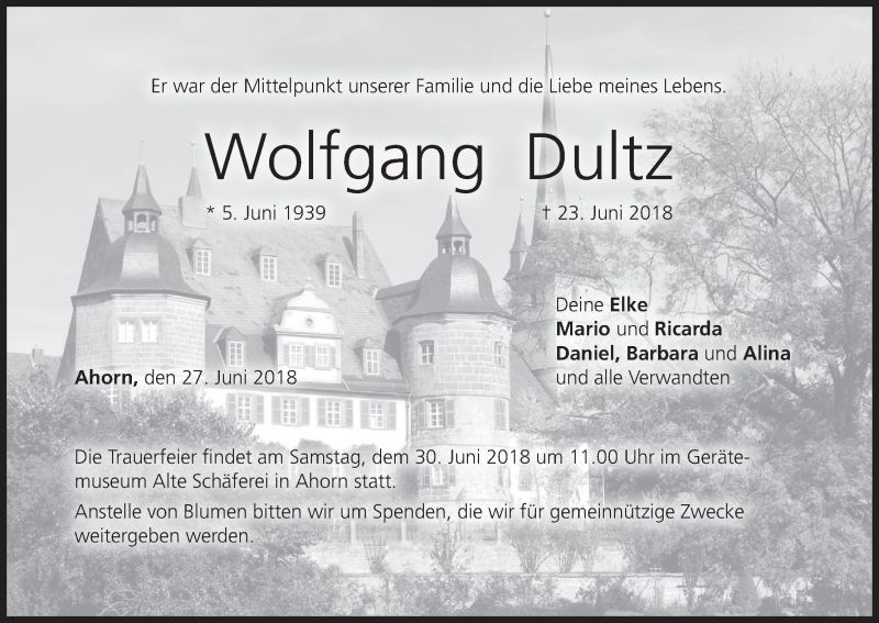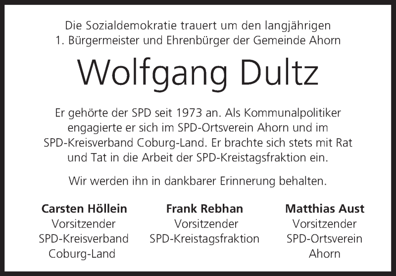 Hier finden Sie alle Traueranzeigen aus der Zeitung, die bisher für Wolfgang Dultz erschienen sind. Weitere Traueranzeigen, die in der Zeitung erscheinen, werden hier ebenfalls aufgelistet