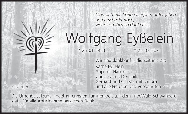 Hier finden Sie alle Traueranzeigen aus der Zeitung, die bisher für Wolfgang Eyßelein erschienen sind. Weitere Traueranzeigen, die in der Zeitung erscheinen, werden hier ebenfalls aufgelistet
