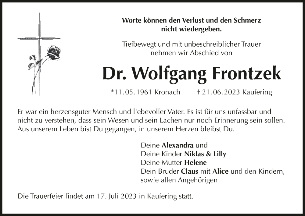 Hier finden Sie alle Traueranzeigen aus der Zeitung, die bisher für Wolfgang Frontzek erschienen sind. Weitere Traueranzeigen, die in der Zeitung erscheinen, werden hier ebenfalls aufgelistet