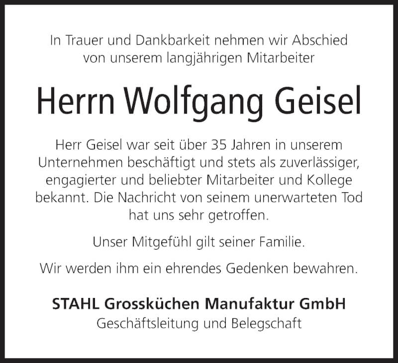 Hier finden Sie alle Traueranzeigen aus der Zeitung, die bisher für Wolfgang Geisel erschienen sind. Weitere Traueranzeigen, die in der Zeitung erscheinen, werden hier ebenfalls aufgelistet
