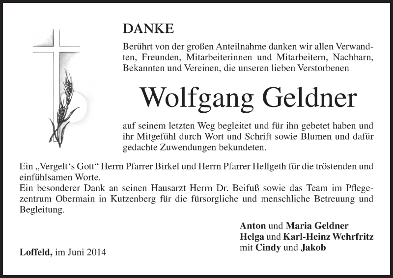 Hier finden Sie alle Traueranzeigen aus der Zeitung, die bisher für Wolfgang Geldner erschienen sind. Weitere Traueranzeigen, die in der Zeitung erscheinen, werden hier ebenfalls aufgelistet