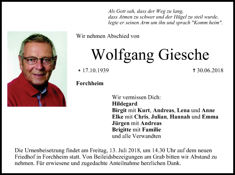 Hier finden Sie alle Traueranzeigen aus der Zeitung, die bisher für Wolfgang Giesche erschienen sind. Weitere Traueranzeigen, die in der Zeitung erscheinen, werden hier ebenfalls aufgelistet