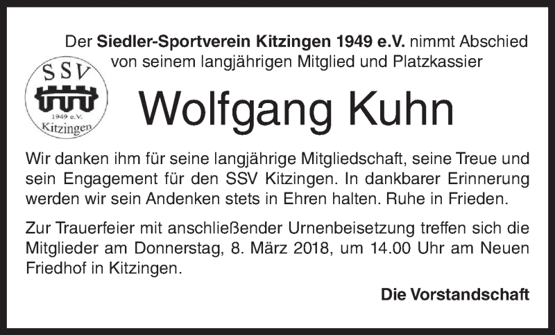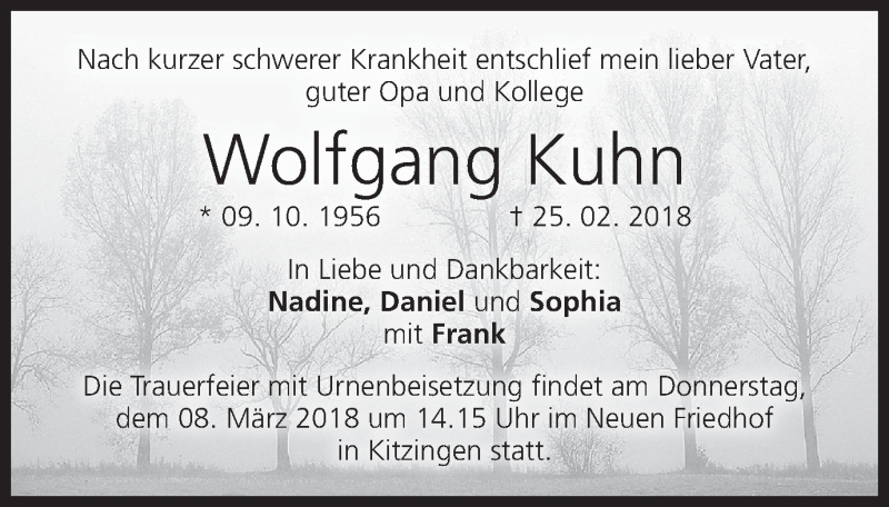 Hier finden Sie alle Traueranzeigen aus der Zeitung, die bisher für Wolfgang Kuhn erschienen sind. Weitere Traueranzeigen, die in der Zeitung erscheinen, werden hier ebenfalls aufgelistet