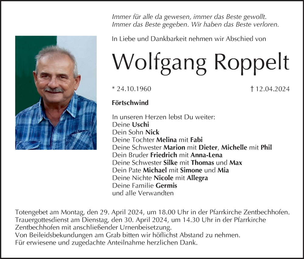 Hier finden Sie alle Traueranzeigen aus der Zeitung, die bisher für Wolfgang Roppelt erschienen sind. Weitere Traueranzeigen, die in der Zeitung erscheinen, werden hier ebenfalls aufgelistet