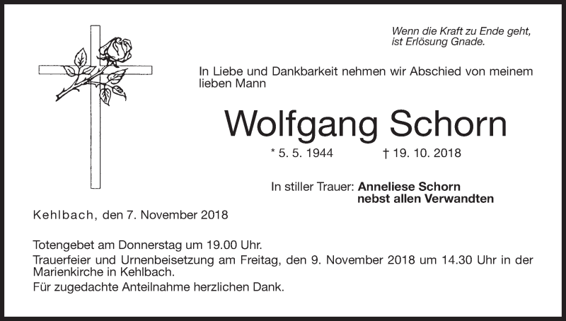 Hier finden Sie alle Traueranzeigen aus der Zeitung, die bisher für Wolfgang Schorn erschienen sind. Weitere Traueranzeigen, die in der Zeitung erscheinen, werden hier ebenfalls aufgelistet