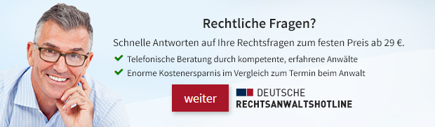 Zur Nutzung der telefonischen Rechtsberatung folgen Sie einfach dem Link zu unserem Partner Deutsche Rechtsanwaltshotline.